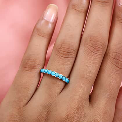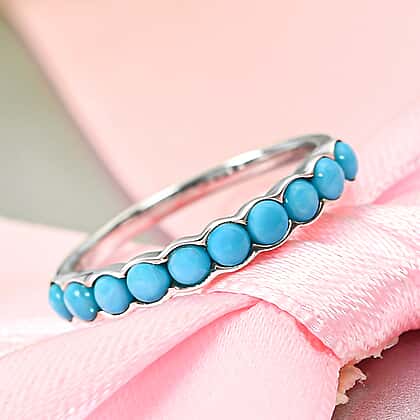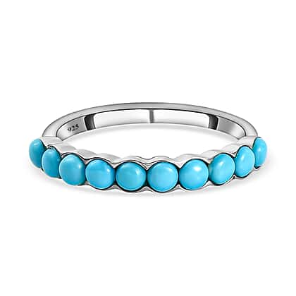 Arizona Sleeping Beauty Turquoise Half Eternity Ring in Platinum Overlay Sterling Silver
