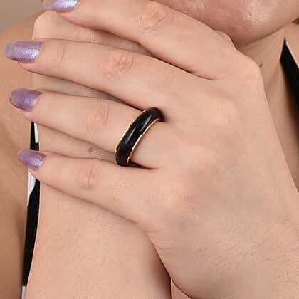 Black Jade Band Ring in Yellow Gold Overlay Sterling Silver 13.50 Ct.