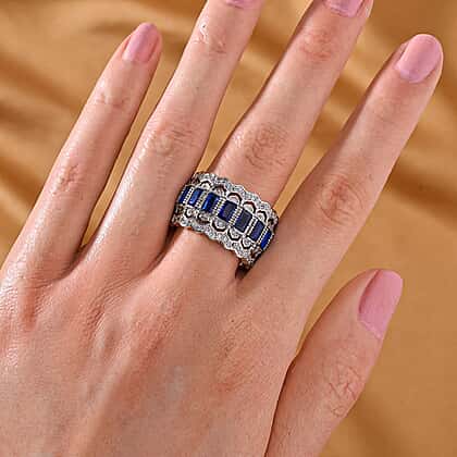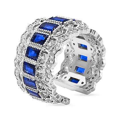 Adorn your finger with royalty through this Blue Austrian Crystal & White Cubic Zirconia Adjustable Ring. The ring features 15 blue crystals set within the wide band and adorned with milgrain detailing. White cubic zirconias set as accents and along the edges add to the regality of the design. The ring, which is made from pure white brass, fits a range of sizes. It can be adjusted from sizes N to P.