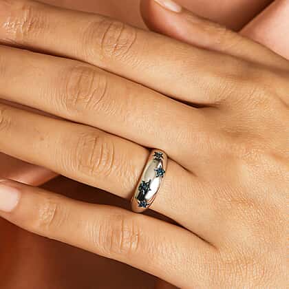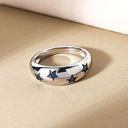 Blue Diamond Star Dome Ring in Platinum Overlay Sterling Silver