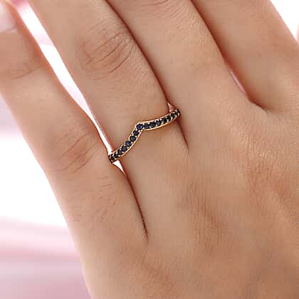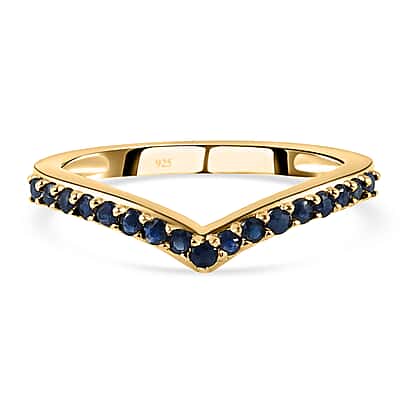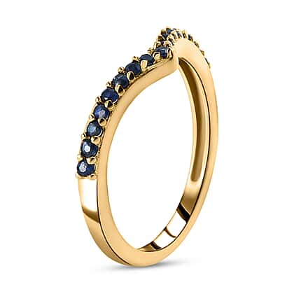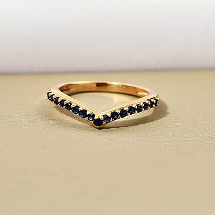 The ring comes in a Wishbone design. The ring is a piece of jewellery in a V shape. The ring is crafted in 14K Gold plated sterling silver. The ring has studded with Blue sapphire gemstones at the head of the shank. The stones are settled with a prong setting. Blue sapphire is known for its highly precious blue colour. The gemstone comes from the Corundum Mineral family.