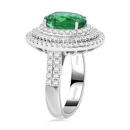 Certified and Appraised RHAPSODY 950 Platinum AAAA Kagem Zambian Emerald, Diamond Ring 5.40 Ct