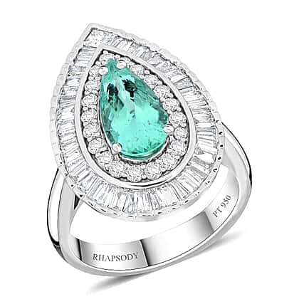 Certified and Appraised RHAPSODY 950 Platinum AAAA Paraiba Tourmaline, E-F VS Diamond Ring 3.20 Ct