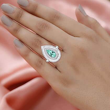 Immerse yourself in the luxury of the limited edition AAAA Paraiba tourmaline and E-F VS diamond double halo ring by RHAPSODY. This one-of-a-kind ring in 950 platinum features a pear-shaped Paraiba tourmaline, cherished for its vivid bluish-green hue. Surrounded by a unique double halo of high-quality diamonds, the ring offers a red-carpet-ready statement look. The varied shaped diamonds, set around the central gemstone, enhance its majestic appeal. Inspired by the water drop, this ring symbolises purity, clarity, and the fluidity of life. Perfect for collectors, this limited-edition ring is a one-of-a-kind treasure.