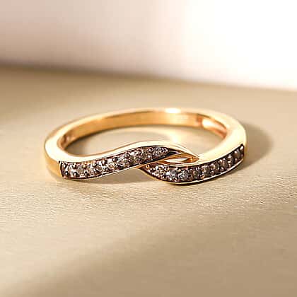 Champagne Diamond Ring in 18K Vermeil Yellow Gold Plated Sterling Silver 0.11 Ct.