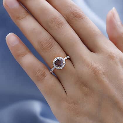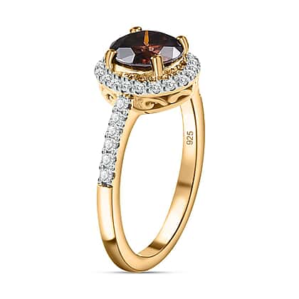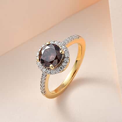 Champagne Moissanite and Moissanite Ring in 18K Vermeil Yellow Gold Plated Sterling Silver 1.42 Ct.