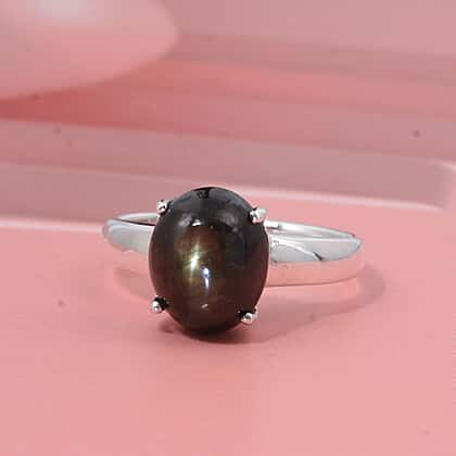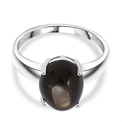 Chantaburi Black Star Sapphire Ring in Rhodium Overlay Sterling Silver 6.27 Ct.