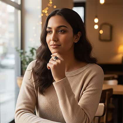 For those who are looking for a ring that makes for a conversation starter, think of the Chantaburi black sapphire ring. Crafted in rhodium overlay sterling silver, it features a cabochon-cut oval gemstone mounted on a smooth shank. This black gemstone makes for a highly opaque stone and is believed to be a healing stone. It exudes power and makes for a bold statement. This ring has a mesmeric sheen that is sure to captivate the onlookers!