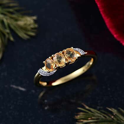 Chantaburi Yellow Sapphire 3 Stone Ring in 18K Yellow Gold Plated Sterling Silver