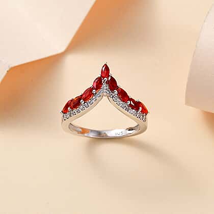 Celebrate the simple pleasures life has to offer with its charismatic Cherry Fire Opal and White Zircon Wishbone Ring. The ring design is sleek and the craftsmanship in Rhodium Overlay Sterling Silver is breathtaking. The wishbone outline is highlighted by Cherry Fire Opal flaunting a marquise shape. The sizzling hot colour of the gemstones finds a harmonising balance in the white zircon brilliance.