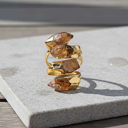 Citrine Ruff Cut Stone Ring (Size Adjustable) in Yellow Gold Plated 10.00 Ct.