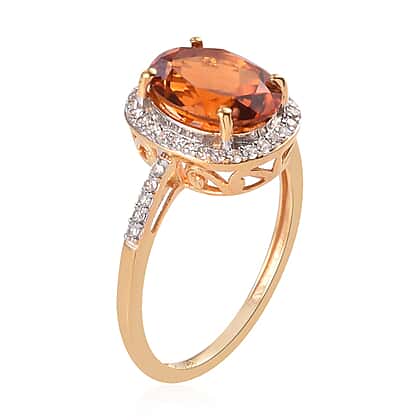 Close Out Deal- Citrine (Ovl 10x8mm) and Natural Cambodian Zircon Ring in 14K Gold Over Sterling Silver 2.75 Ct.
