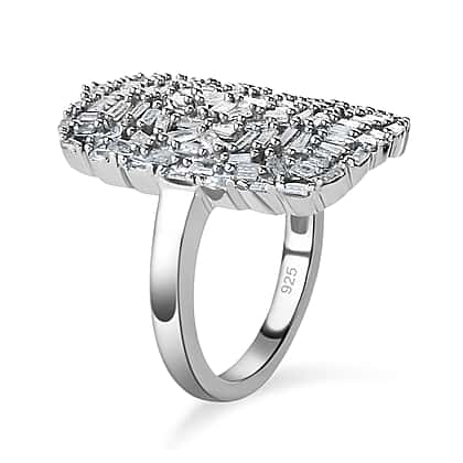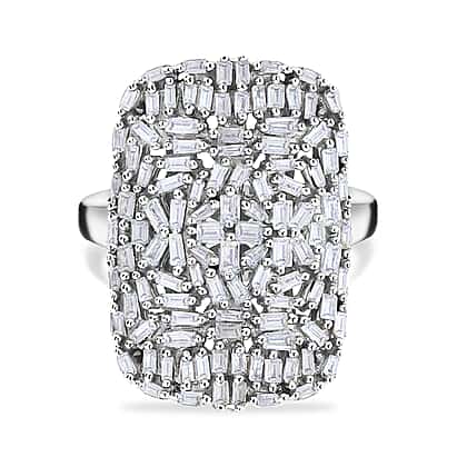 - Cluster ring features 108 tapered diamond baguettes (1 carat)