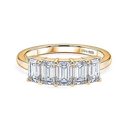 D'Joy - Moissanite 5 Stone Ring in Yellow Gold Plated Sterling Silver 1.37 Ct.