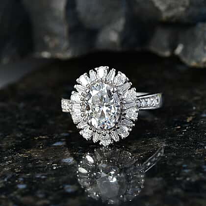 D'Joy - Moissanite Halo Ring in Rhodium Overlay Sterling Silver 2.81 Ct.