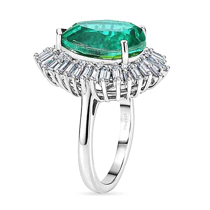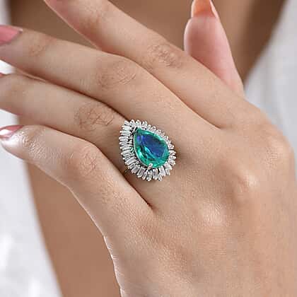 D'Joy - Peacock Triplet Quartz & Moissanite Pear Cut Halo Ring in Rhodium Overlay Sterling Silver 6.54 Ct.