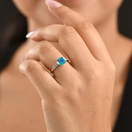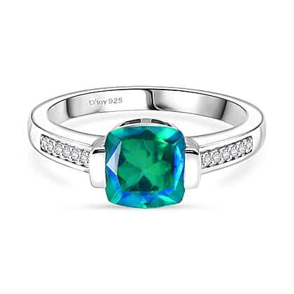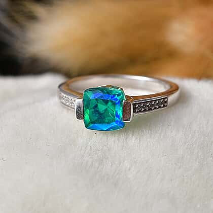 D'Joy - Peacock Triplet Quartz & White Zircon Solitaire Ring in Platinum Overlay Sterling Silver 1.74 Ct.