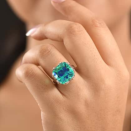 D'Joy - Peacock Triplet Quartz & White Zircon Solitaire Ring in Rhodium Overlay Sterling Silver 13.63 Ct.