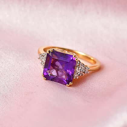 D'Joy African Amethyst, White Zircon Main Stone With Side Stone Ring Sterling Silver 3.461 Ct.