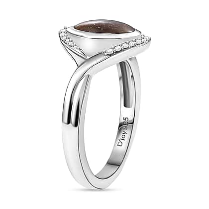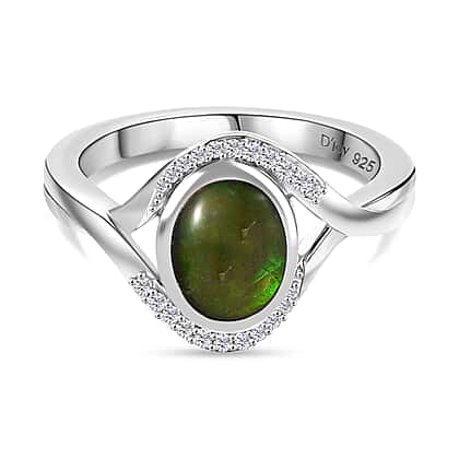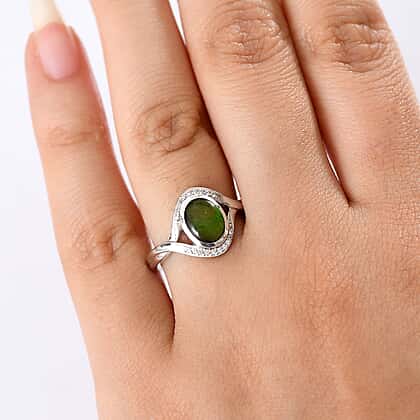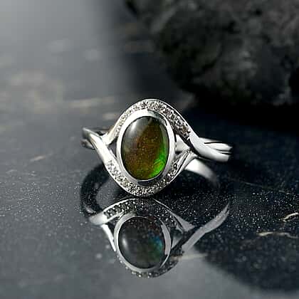 D'joy Ammolite & White Zircon Ring in Rhodium Overlay Sterling Silver 1.20 Ct.