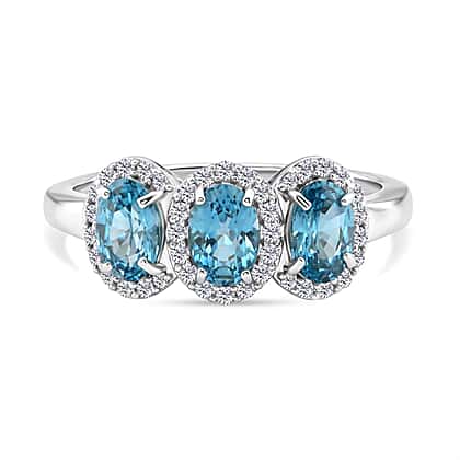 D'Joy Blue Zircon & White Zircon Trilogy Ring in Rhodium Overlay Sterling Silver 2.74 Ct.