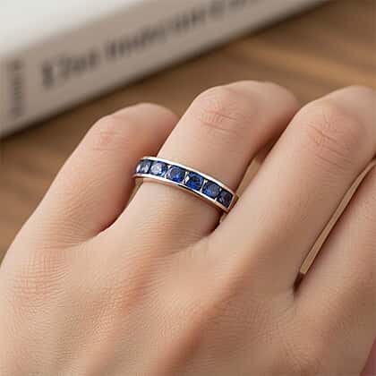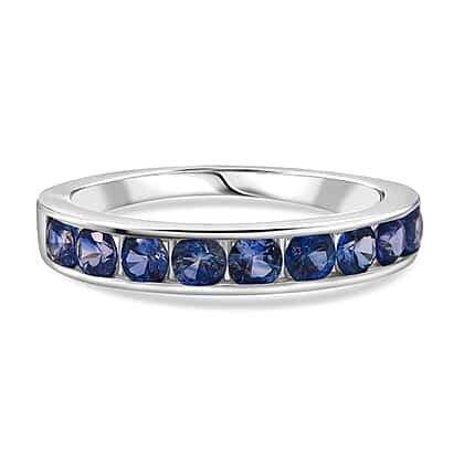 D'Joy Ceylon Sapphire Ring in Rhodium Overlay Sterling Silver 1.35 Ct.