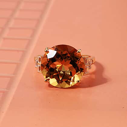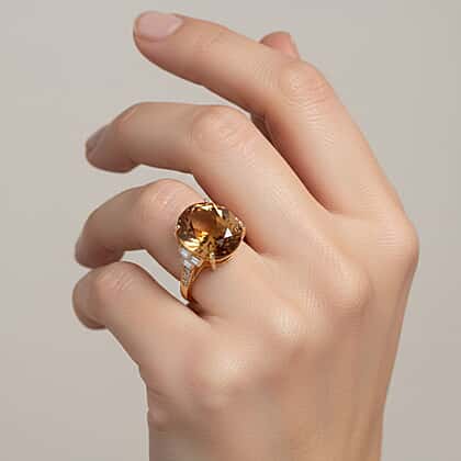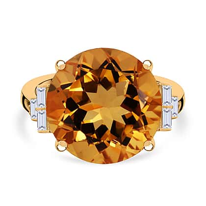 D'Joy Citrine & Moissanite Ring in 18K Vermeil Yellow Gold Plated Sterling Silver 10.31 Ct.