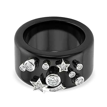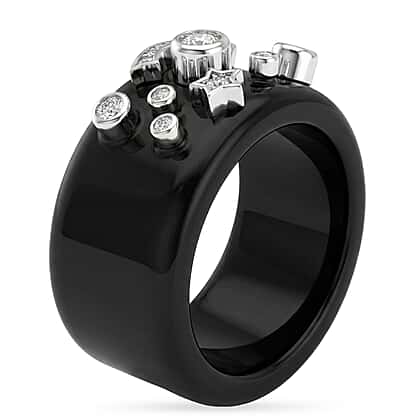 D'Joy, Dyed Black Jade , Moissanite Fancy Ring in Rhodium Overlay Sterling Silver 25.33 ct 25.330 Ct.