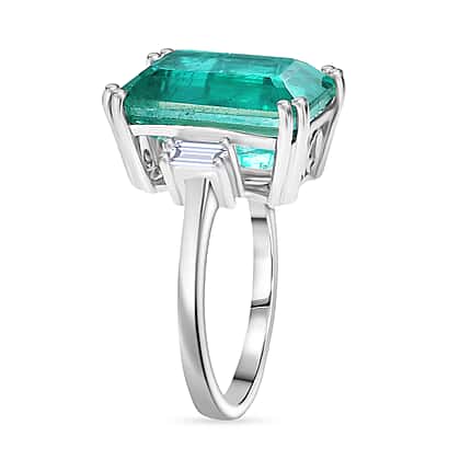 D'Joy, Emeraldine Triplet Quartz , White Topaz Main Stone With Side Stone Ring in Platinum Overlay Sterling Silver 8.33 ct 8.325 Ct.