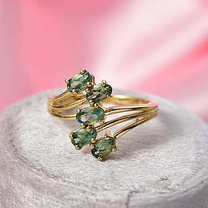 D'Joy Green Apatite Ring in 18K Vermeil Yellow Gold Plated Sterling Silver 1.21 Ct.