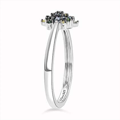 D'Joy Green Diamond & Multi Diamond Cluster Ring in Rhodium Overlay Sterling Silver