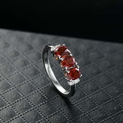 D'Joy Hessonite Garnet, White Diamond Ring in Platinum OverlaySterling Silver 1.431 Ct.