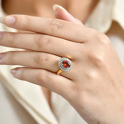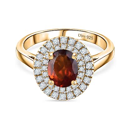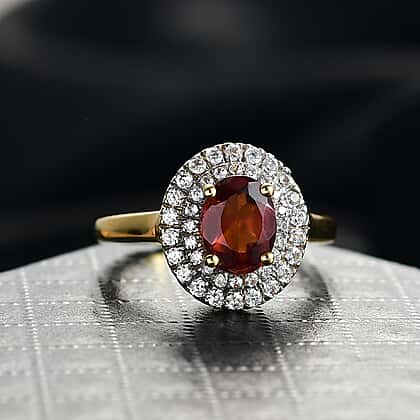 D'Joy Hessonite Garnet, White Zircon Main Stone With Side Stone Ring in 18K YG PlatingSterling Silver 2.087 Ct.