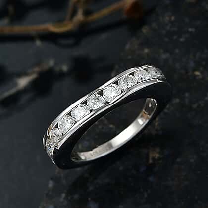 D'Joy Moissanite Band Ring in Platinum Overlay Sterling Silver 1.23 Ct.