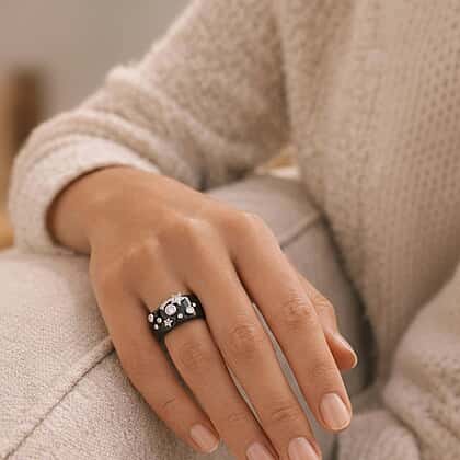 D'Joy Moissanite & Boots Black Jade Band Celestial Ring in Rhodium Overlay Sterling Silver 25.33 Ct.