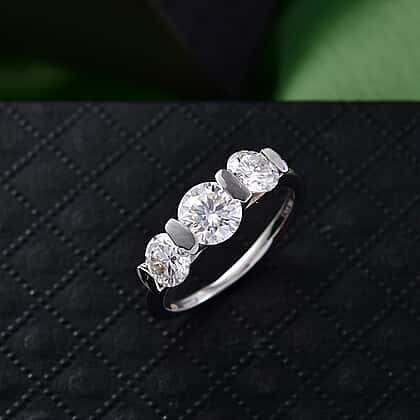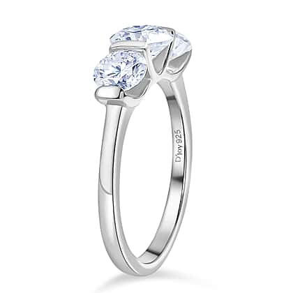 D'Joy Moissanite Trilogy Ring in Platinum Overlay Sterling Silver 1.71 Ct.