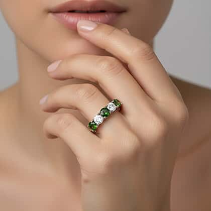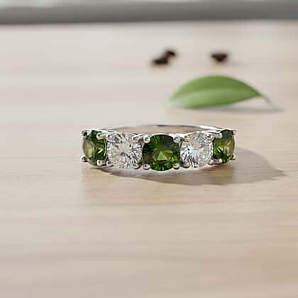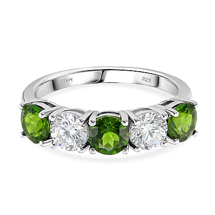 D'Joy Natural Chrome Diopside, Moissanite 5 Stone Ring in Rhodium Overlay Sterling Silver 2.45 Ct.