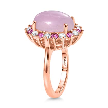 D'Joy Kunzite, Rhodolite Garnet and White Zircon Halo Ring in Rose Gold Plated Sterling Silver 7.91 Ct.