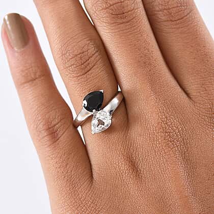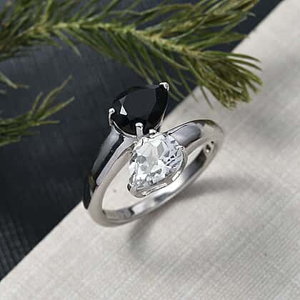 D'Joy Natural Thai Black Spinel Ring in Platinum Overlay Sterling Silver 2.75 Ct.