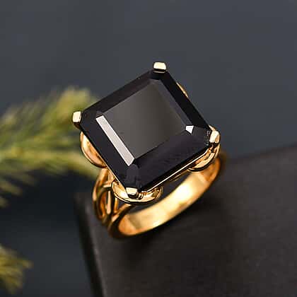D'Joy Natural Thai Black Spinel Solitaire Ring in 18K Yellow Gold Plated Sterling Silver 14.82 Ct, Silver Wt. 6.26 Gms.