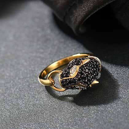 D'Joy Natural Thai Black Spinel & White Zircon Panther Ring in 18K Yellow Gold Plating Sterling Silver 1.16 Ct.