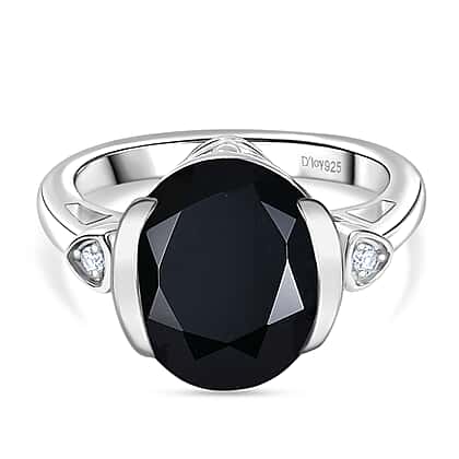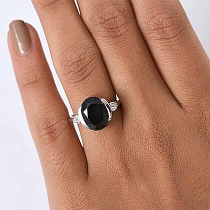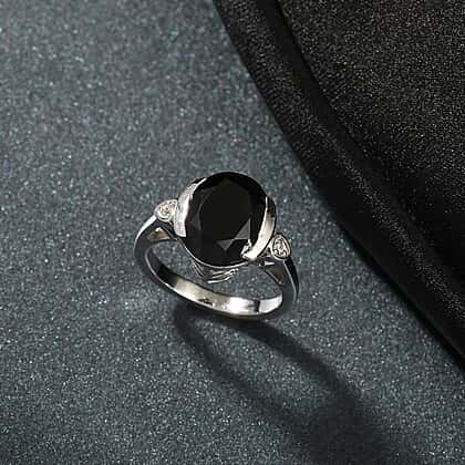 D'Joy Natural Thai Black Spinel & White Zircon Ring in Platinum Overlay Sterling Silver 6.02 Ct.