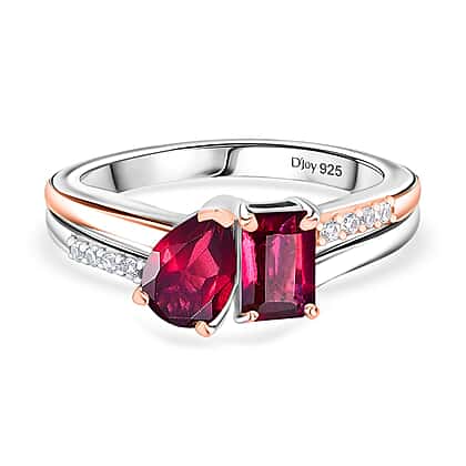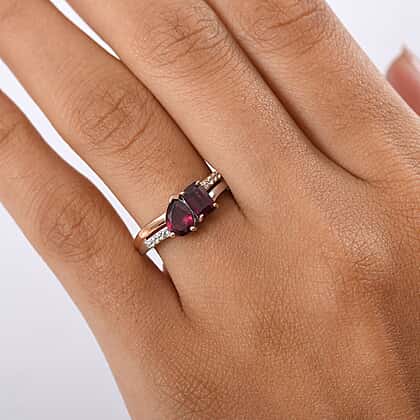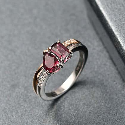 Djoy Orissa Rhodolite Garnet & White Zircon Ring in Rose Gold & Platinum Plating Sterling Silver 1.70 Ct.