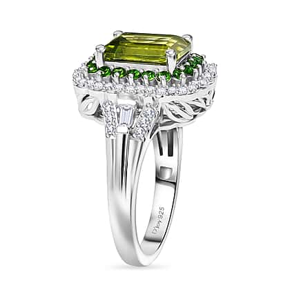 D'Joy Peridot, Natural Chrome Diopside & White Zircon Solitaire Ring in Rhodium Overlay Sterling Silver 3.65 Ct.