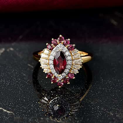D'Joy Rhodolite Garnet & Moissanite Ring in 18K Vermeil Yellow Gold Plated Sterling Silver 1.66 Ct.