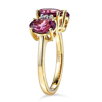 D'Joy Rhodolite Garnet, White Zircon 3 Stone Ring in 18K YG VermeilSterling Silver 3.352 Ct.