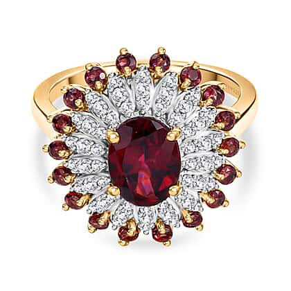 D'Joy Rhodolite Garnet & White Zircon Ring in 18K Vermeil Yellow Gold Plated Sterling Silver 2.58 Ct.