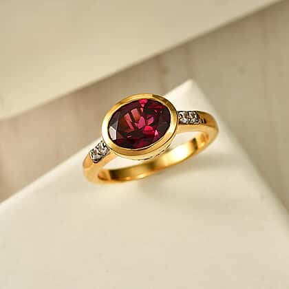 D'Joy Rhodolite Garnet & White Zircon Ring in Yellow Gold Plated Sterling Silver 2.34 Ct.