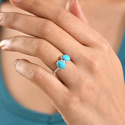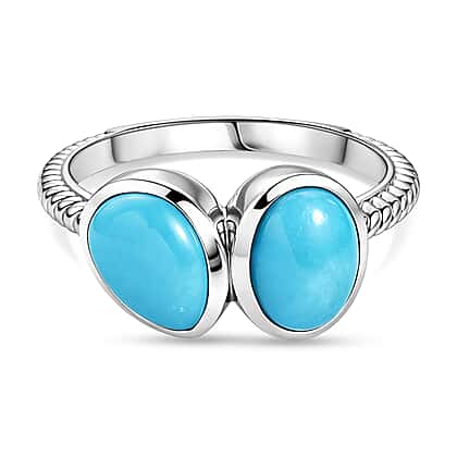 D'Joy Sleeping Beauty Turquoise 2 Stone Ring in Rhodium Overlay Sterling Silver 2.58 Ct.