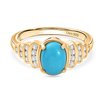 D'Joy Sleeping Beauty Turquoise, White Zircon Ring in Yellow Gold Plated Sterling Silver 1.53 Ct.